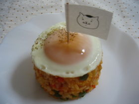 ネコムライスは作中で猫村さんが尾仁子お嬢様という不良娘(実は優しい)に作ってあげたもの。始めは投げ捨てられてしまったので、更にネコムライスエッグとして、上に目玉焼きを乗せたのだ。